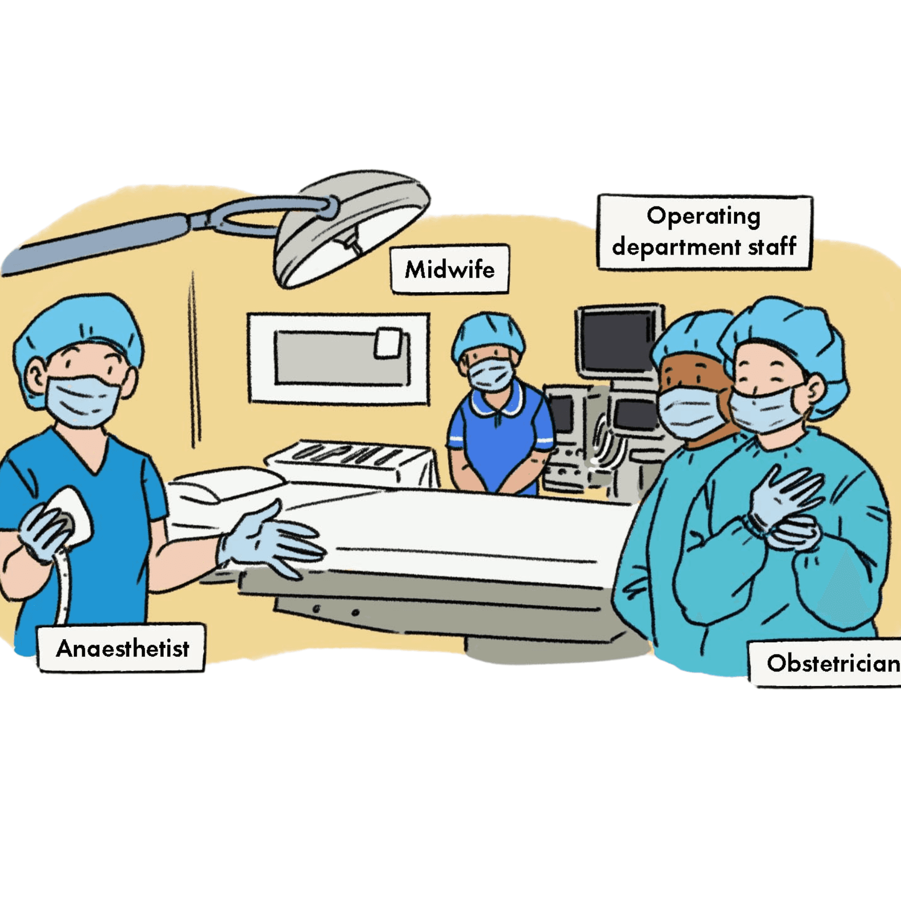 Medical staff will introduce themselves and do safety checklist. This will include introducing their names and roles and will ask you to confirm your name, date of birth and the procedure your are going to have.