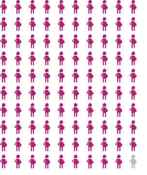 At 41 weeks (1 week overdue) | ![]() | 83 in 100 women/birthing people will have gone into labour by this point. Your team will offer to plan a date for induction. This is due to increasing chances of:
